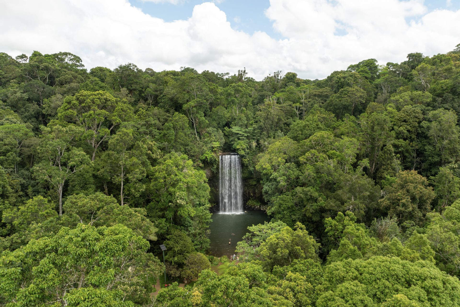 Weitereise in das vulkanische Hochland der Atherton Tablelands. Hier besuchen Sie einen idyllischen Kratersee, die malerischen Millaa Millaa-Wasserfälle sowie den berühmten Curtain Fig Tree, der mit den herunter-hängenden Wurzeln und Lianen einem riesigen hölzernen Vorhang gleicht. Die Fahrt führt später weiter südwärts durch fruchtbares Farmland wieder zurück zur Küste bis nach Mission Beach. Ihr Hotel liegt direkt am 14 km langen goldenen Sandstrand, und vielleicht nutzen Sie die Zeit bis zum Abendessen noch zu einem Strandspaziergang.
